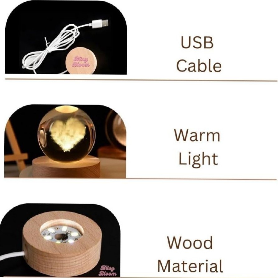 4 = Elegant Quality & Wooden Base: Crafted from high-quality crystal material. The natural wooden base adds a touch of elegance and stability, making it a stylish addition to your home decor.